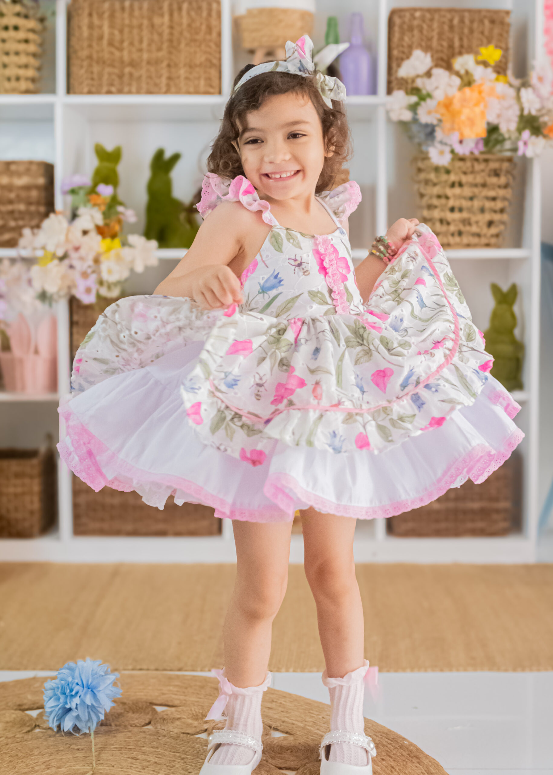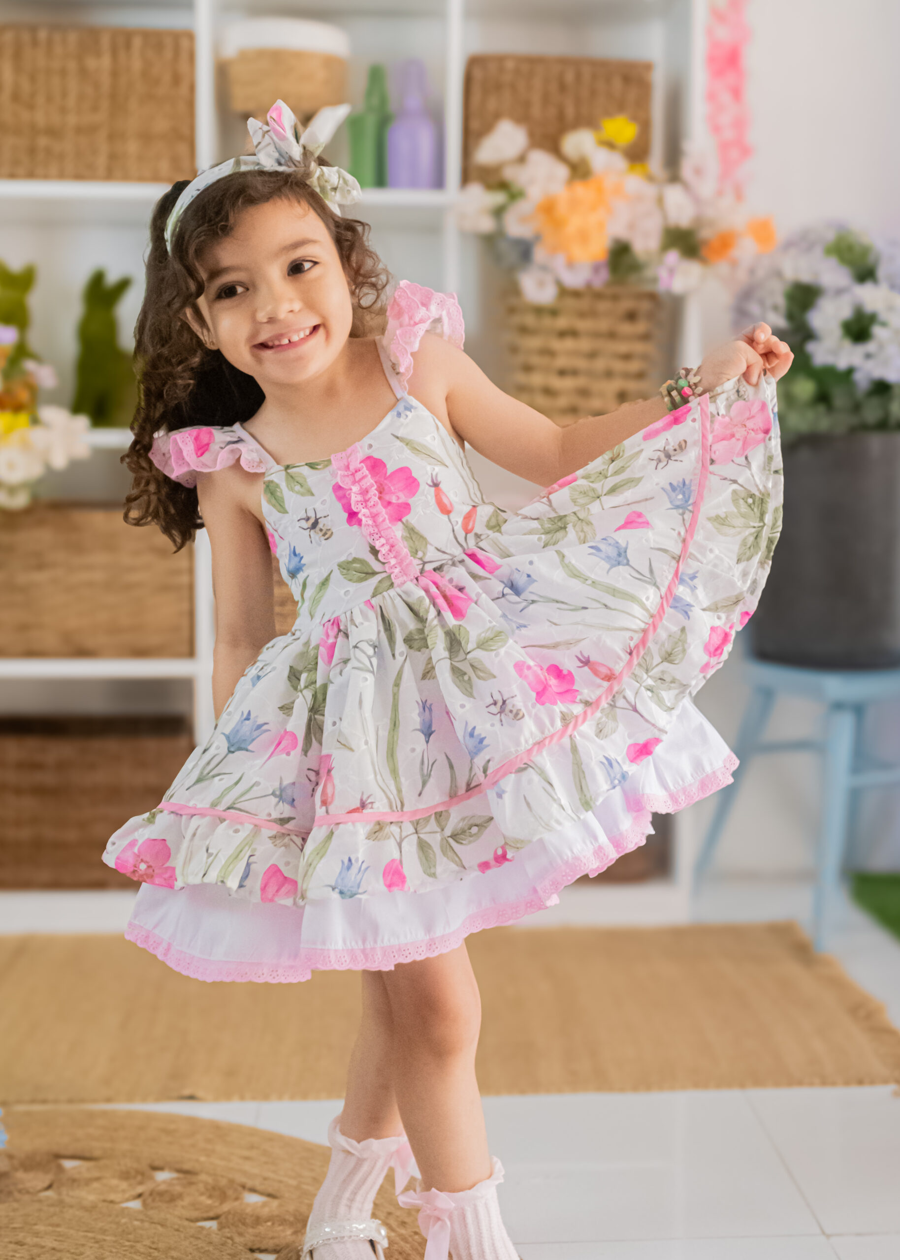 Full layered skirt with scallop edging and coordinating headband for extra dose of cuteness.