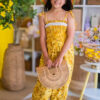 This playful romper is made from premium cotton and fully lined for a soft, breathable feel. It features a smocked bodice, adjustable tie straps, and an elasticized hem for added comfort and style. Covered in a vibrant banana print, it’s a fun and cheerful piece perfect for sunny adventures.