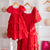 Material: Cotton, with Chiffon ruffles, lined with muslin